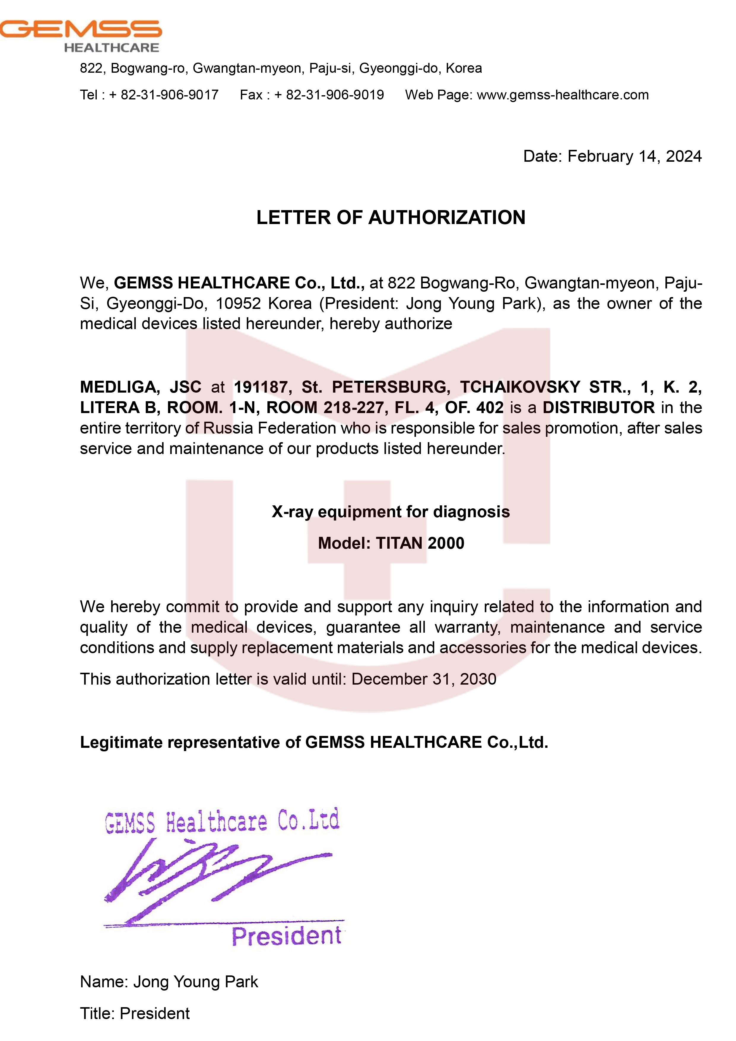 Авторизационное письмо Gemss от 2024 года