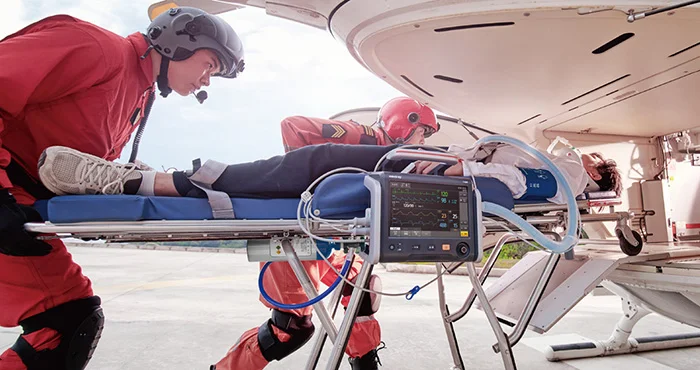 Профессиональный ИВЛ для мобильных бригад – легкий (4,5 кг), с защищенным корпусом и цветным сенсорным управлением для экстренных перевозок.