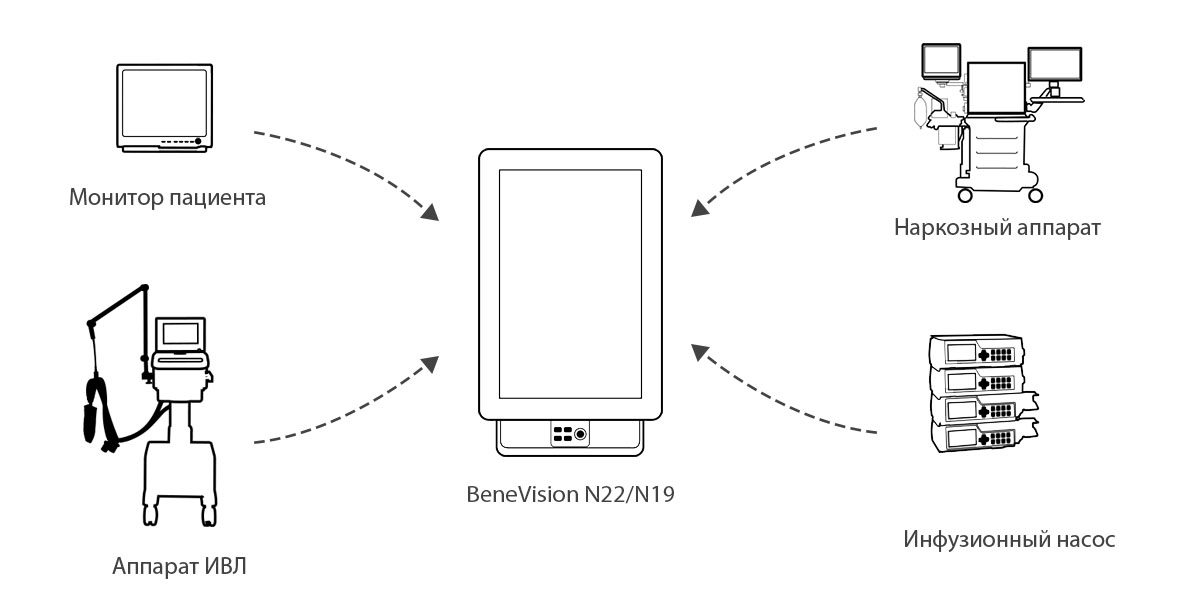 Широкие возможности подключения позволяют интегрировать мониторы BeneVision N19 в любой клинический рабочий процесс и отказаться от использования бумажных документов. Принципиально новая клиническая информационная рабочая станция iView выводит на экран монитора пациента все данные (PACS, LIS, EMR, и т. д.) для выполнения комплексной диагностики. Модуль BeneLink, обладающий лидирующими функциональными характеристиками, позволяет подключить к монитору пациента все прикроватные устройства, получать информацию в режиме реального времени, обеспечивая централизованное управление данными.