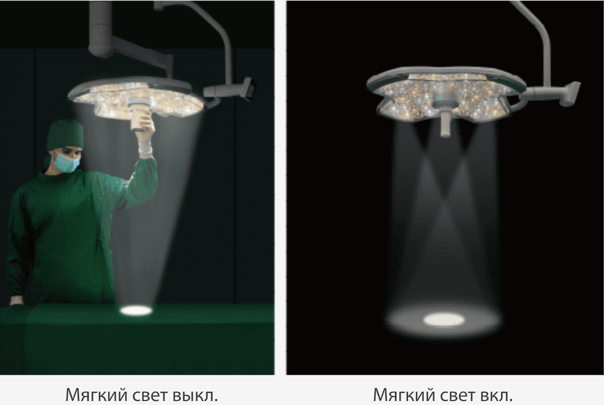Создание постепенного перехода интенсивности света между освещаемой хирургической областью и общим освещением в операционной.