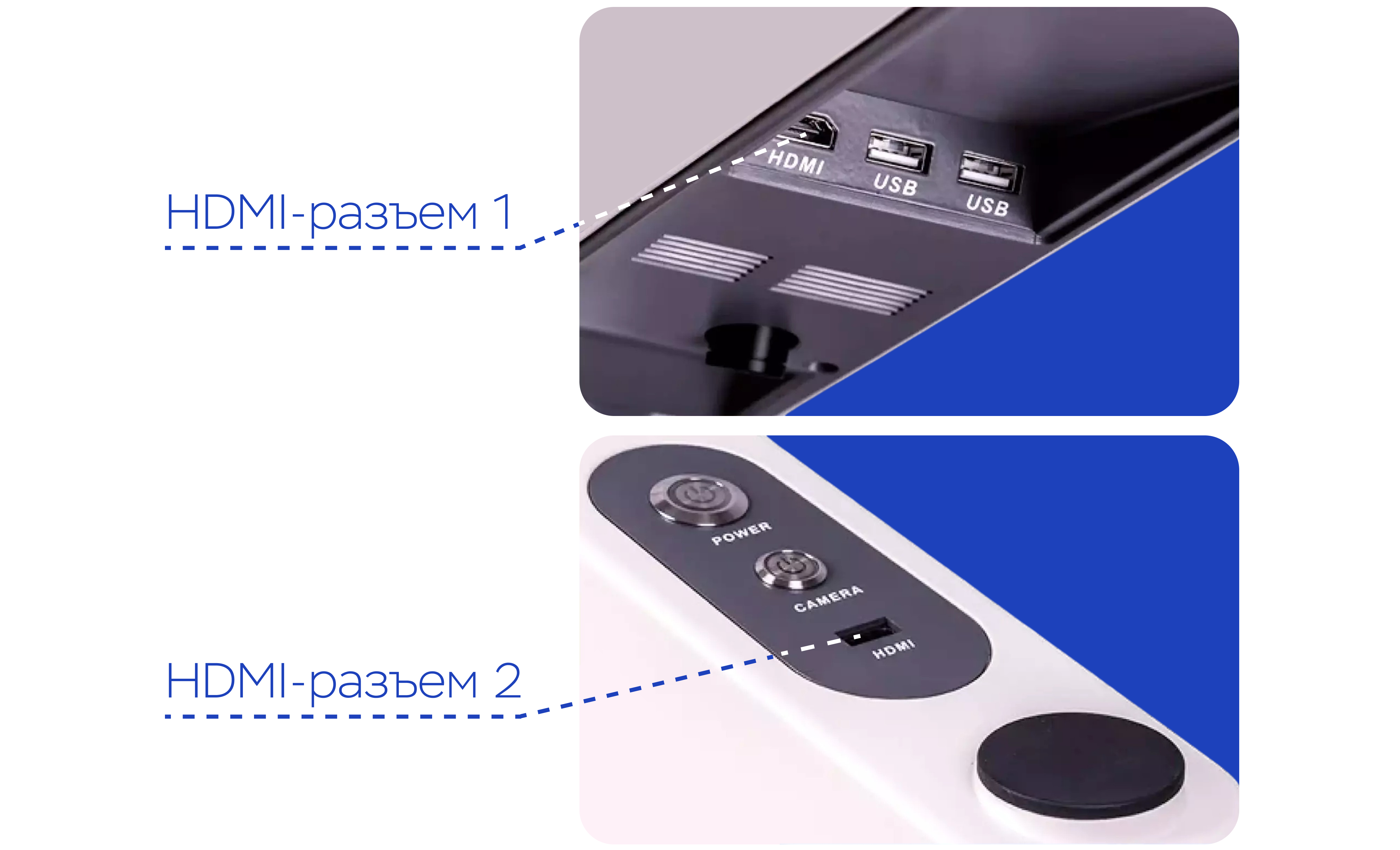 Двойной разъем HDMI позволяет одновременно подключать два устройства с помощью двух кабелей HDMI.