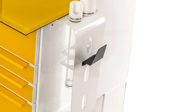 Четыре ящика выдвижной конструкции для размещения инструментария, верхний ящик укомплектован УФ бактерицидной лампой для поддержания условий стерильности