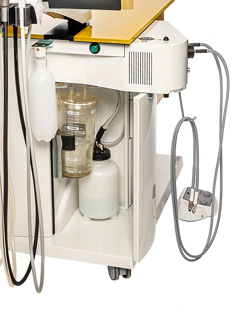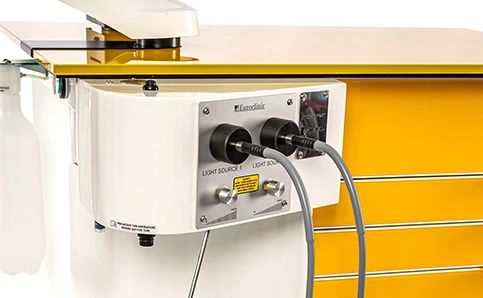 - два встроенных светодиодных источника света со стандартными разъемами типа Storz. Интенсивность освещения регулируется как с сенсорного экрана, так и с помощью диммеров, расположенных под источниками света