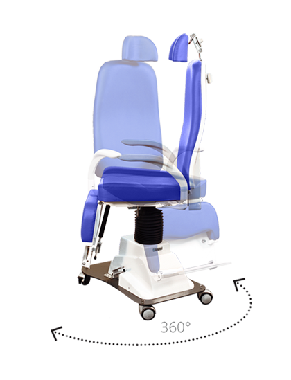 ЛОР-кресло пациента с таким же эстетическим дизайном, что и модель OTO P/V Professional, но оснащенное гидравлической системой, позволяющей опускать и поднимать кресло.