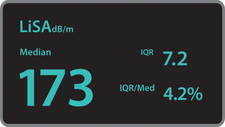 Количественный анализ стеатоза печени Количественная оцененка тяжести стеатоза печени с помощью технологии LiSA (поглощения ультразвука в печени).