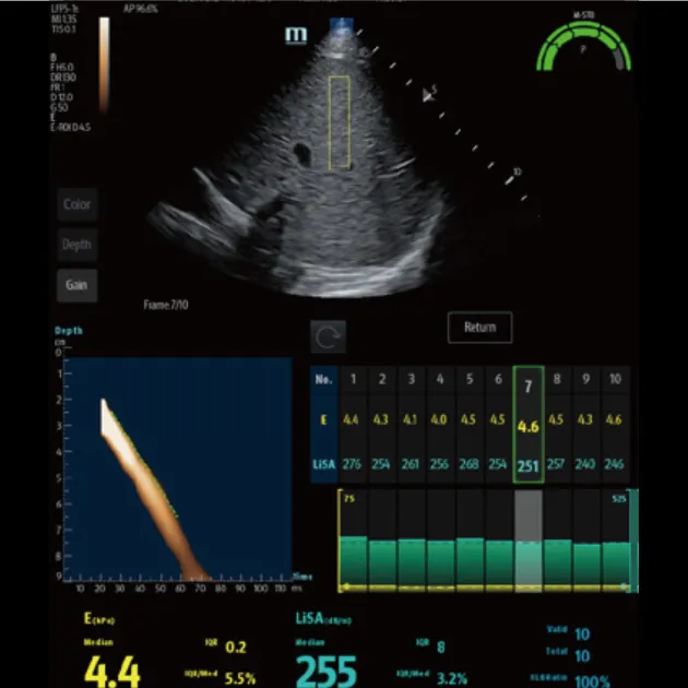 • Проводить количественное выявление и оценку фиброза и стеатоза печени под визуальным контролем 2D-ультразвука в режиме реального времени