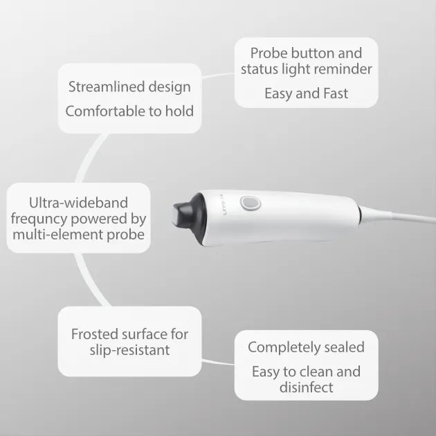 • Профессиональный ультразвуковой зонд для облегчения исследования асцита и т.д.