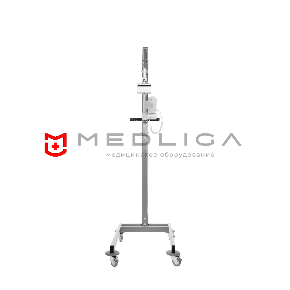 Удобная мобильная стойка с электрической регулировкой высоты MEDTRADE предназначена для использования портативного рентген-аппарата в условиях ветеринарного кабинета.