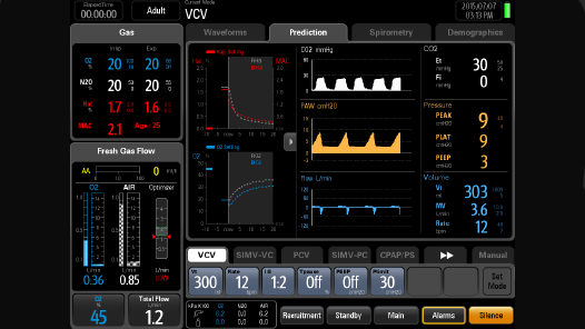 С новым A8 возможно прогнозировать расход анестетика, как FiAА, так и EtAA. Полный анализ расхода анестетика одновременно отображает показатели для прошедшего, текущего и предстоящего периода анестезии вместе со значением MAC.