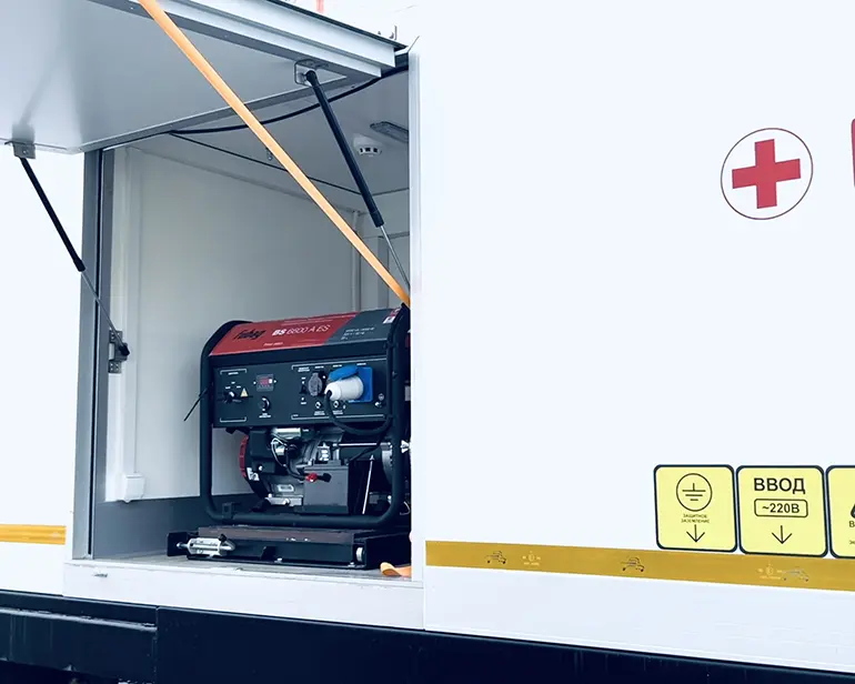 Мобильный медицинский комплекс оснащен автономным генератором, климат-контролем, состоящим из приточно-вытяжной вентиляции, мультисплит системы кондиционирования, конвекционными обогревателями и воздушной завесой. Во время перемещения комплекса отопление помещений осуществляется автономным воздушным отопителем на дизельном топливе. Медицинские отсеки медицинского модуля оснащены автоматизированными рабочими места с доступом с сеть Internet.