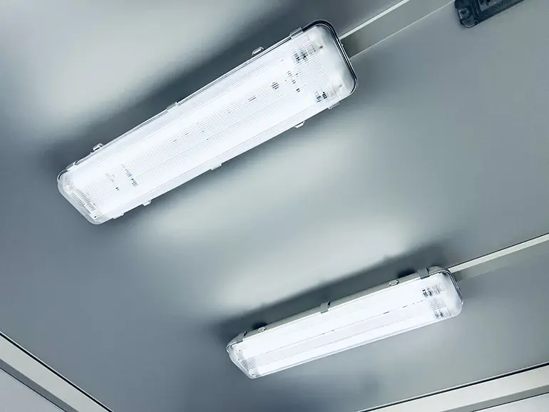 • Основное (220 В ) обеспечивается светодиодными светильниками, установленными на потолке в каждом отсеке.