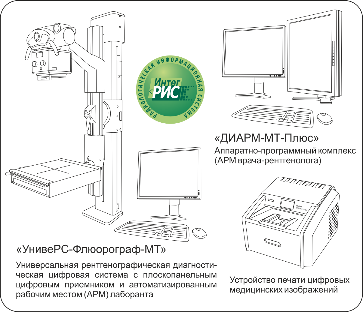 - аппаратно-программный комплекс «ДИАРМ-МТ-Плюс» (АРМ врача-рентгенолога);